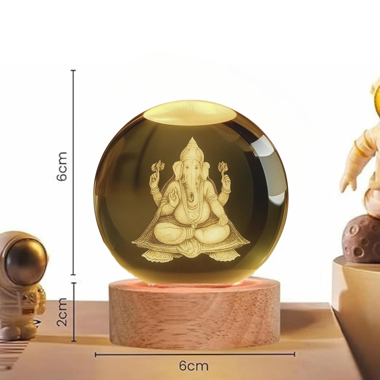 One94Store 3D Engraved Deer Crystal Globe Lamp | USB LED Night Light with Wooden Base | Creative 6 cm Crystal Ball Table Lamp for Bedroom, Home, Office Décor & Gifting (Warm White)